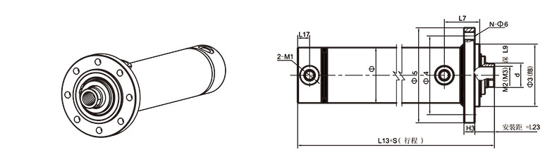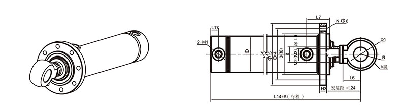 活塞桿端為外螺紋桿頭耳環(huán)連接