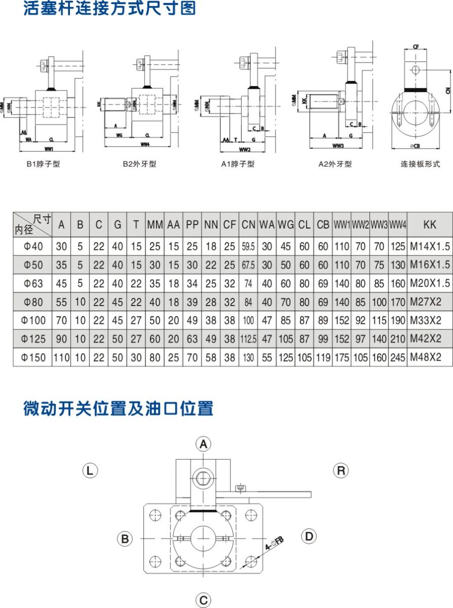 柱型模具油缸 外形安裝尺寸圖