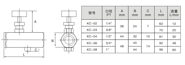 KC管式節(jié)流閥又稱CS流量控制閥,KC-02即CS1002,壓力21Mpa,流量10L/min