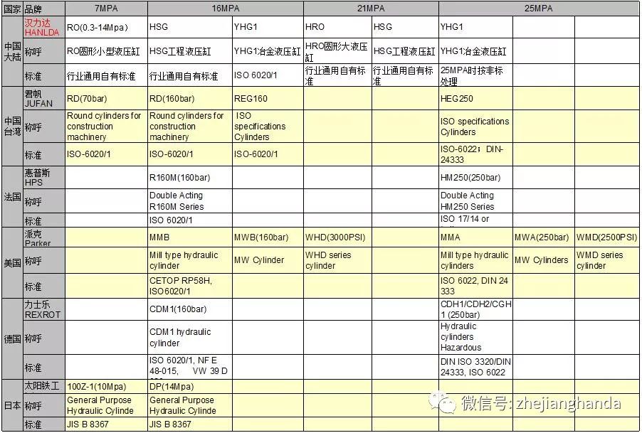 ■ 各個(gè)系列焊接油缸的常見執(zhí)行標(biāo)準(zhǔn):