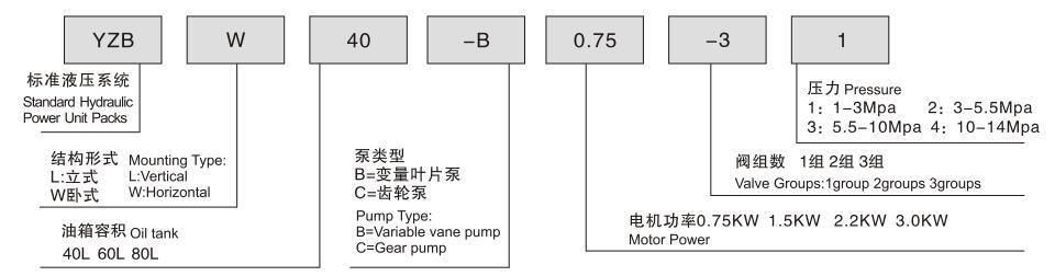 小型標(biāo)準(zhǔn)液壓泵站型號命名方式: